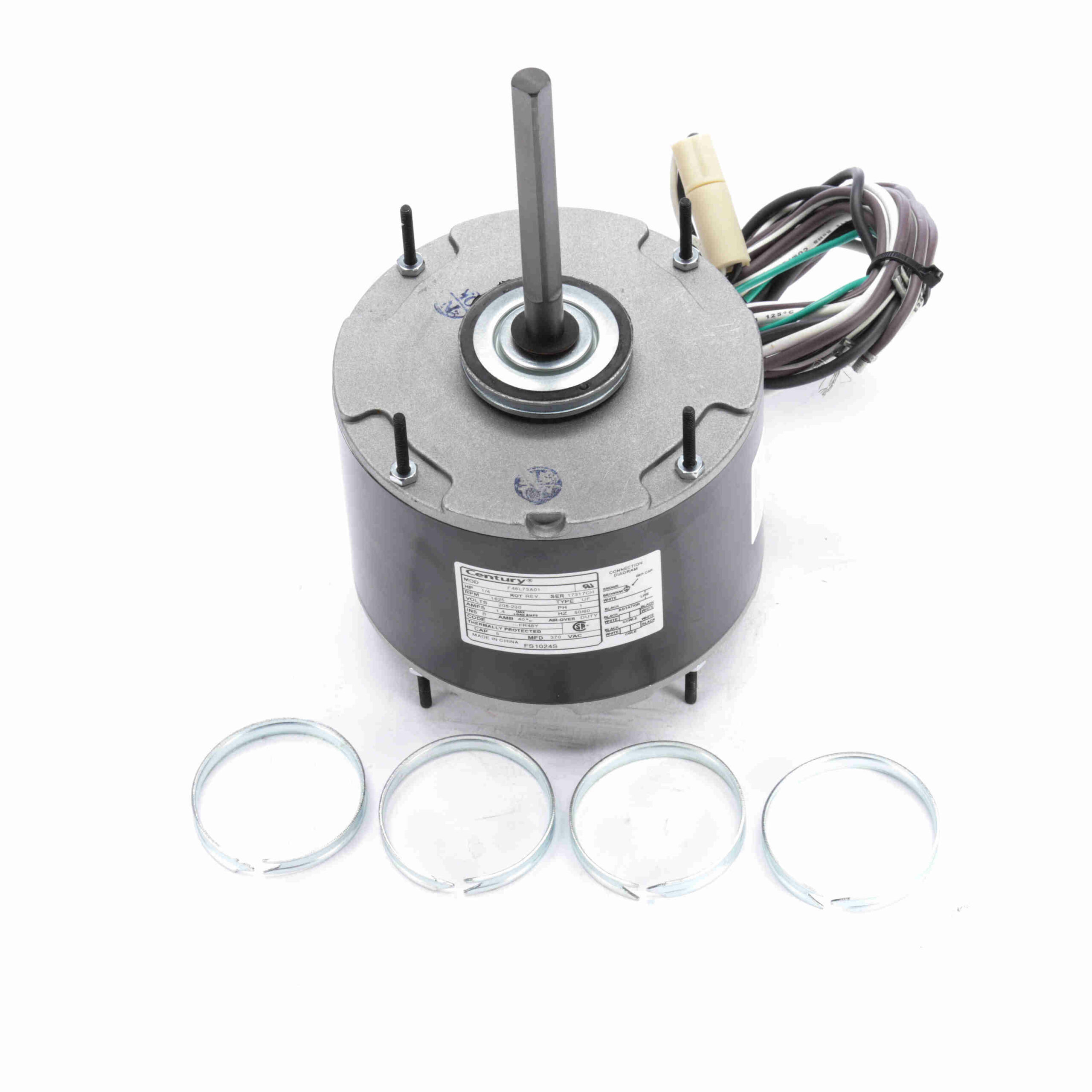 They feature 1 phase, 1/4 HP, 208-230 Voltage Rating, 1500 RPM Speed, Resilient Ring/Extended Studs mounting, 1.4 Amps, B Insulation Class, Air Over Duty, OAO Enclosure Type. As trusted Century Motors motor suppliers and dealers, we make it easy to find the right model for industrial, commercial, or HVAC use.
