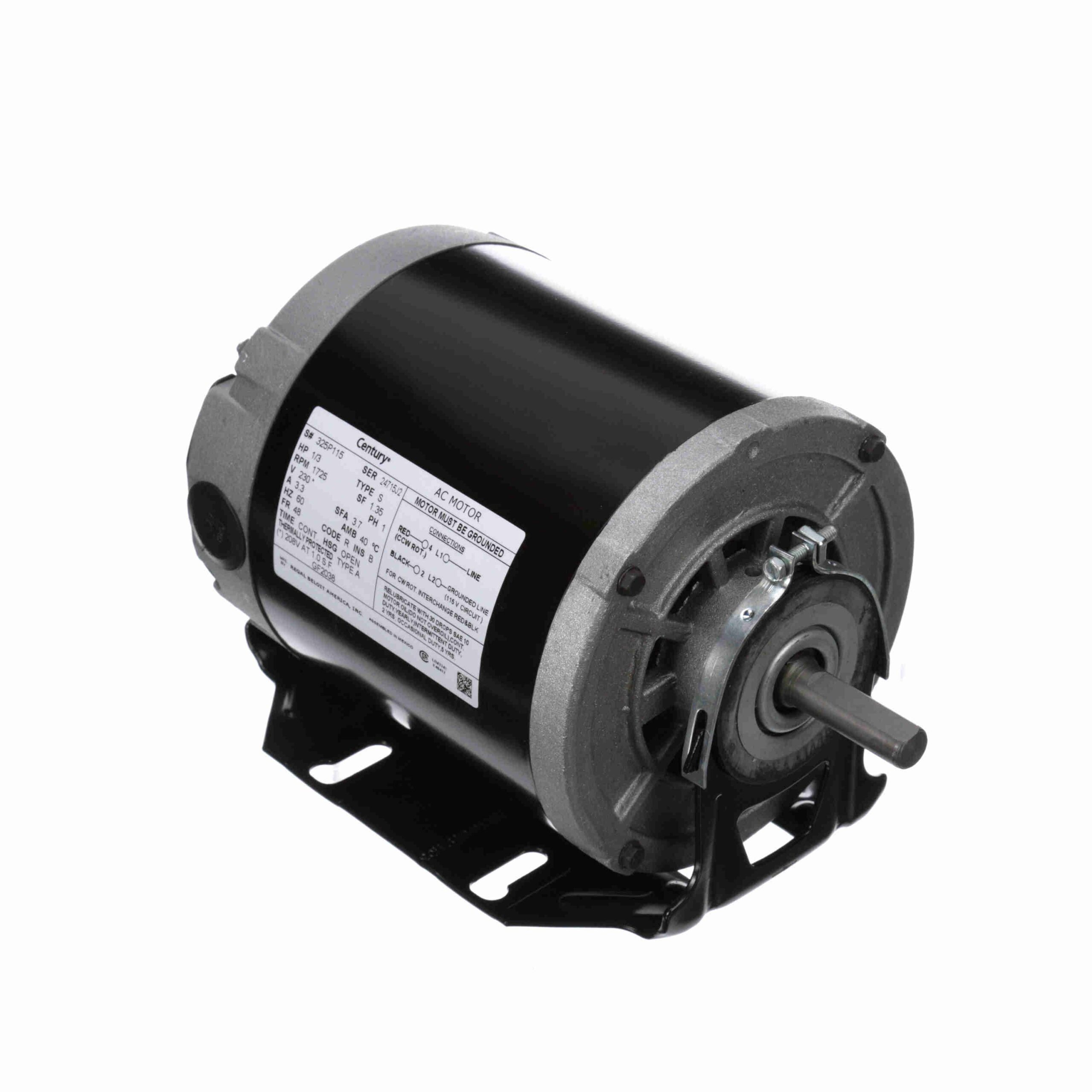 They feature 1 phase, 1/3 HP, 230 Voltage Rating, 1800 RPM Speed, Resilient Base mounting, 3.3 Amps, B Insulation Class, Continuous Duty, OAO Enclosure Type. As trusted Century Motors motor suppliers and dealers, we make it easy to find the right model for industrial, commercial, or HVAC use.